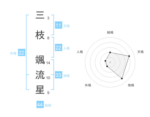 三枝 颯流星さんの外格は22画の1点!