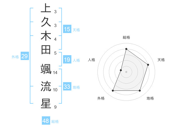 上久木田 颯流星さんを姓名の画数から五運を鑑定