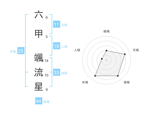 六甲 颯流星さんを姓名の画数から五運を鑑定