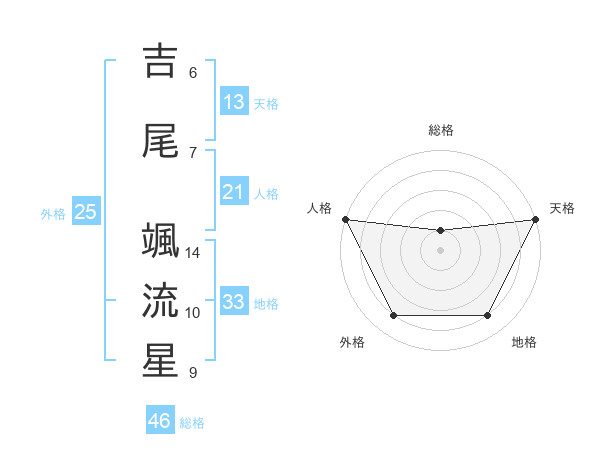 吉尾 颯流星さんを姓名の画数から五運を鑑定