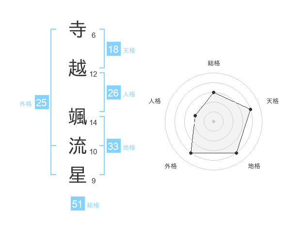 寺越 颯流星さんを姓名の画数から五運を鑑定