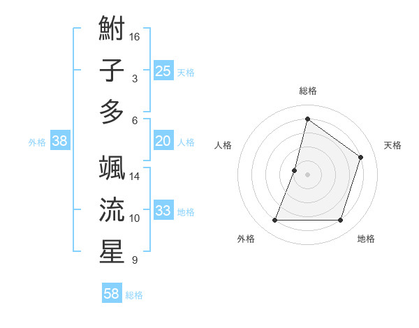 鮒子多 颯流星さんを姓名の画数から五運を鑑定