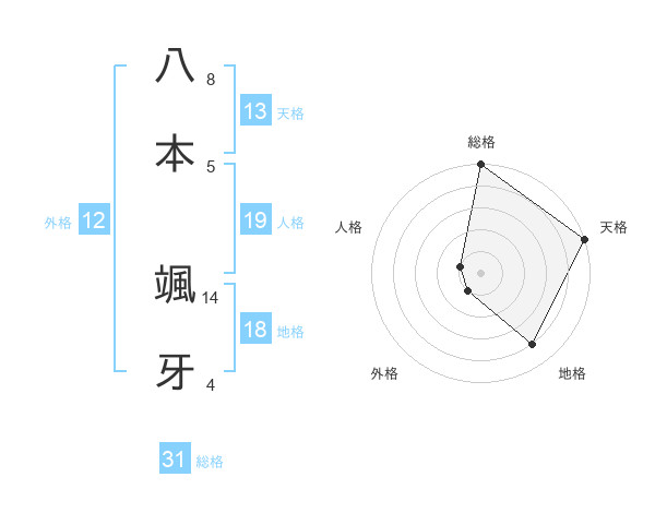 八本 颯牙さんを姓名の画数から五運を鑑定
