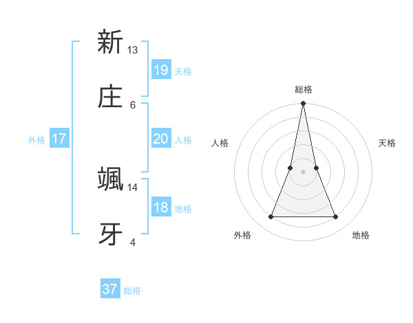 新庄 颯牙さんを姓名の画数から五運を鑑定