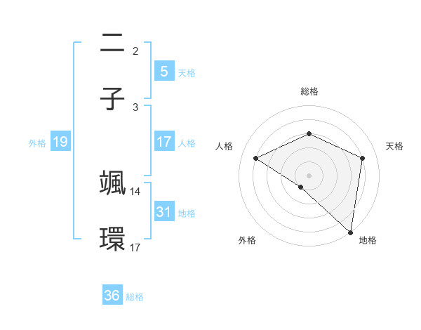 二子 颯環さんの天格は5画の4点!