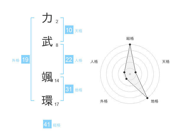 力武 颯環さんを姓名の画数から五運を鑑定