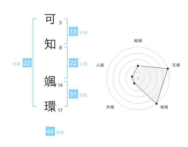 可知 颯環さんの総格は44画の2点!