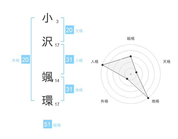 小沢 颯環さんを姓名の画数から五運を鑑定