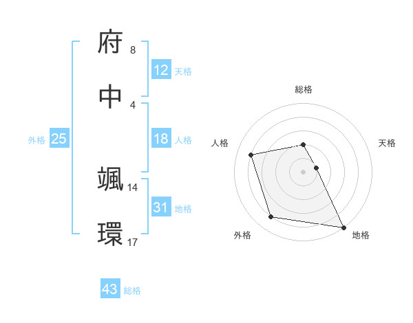 府中 颯環さんの地格は31画の5点!