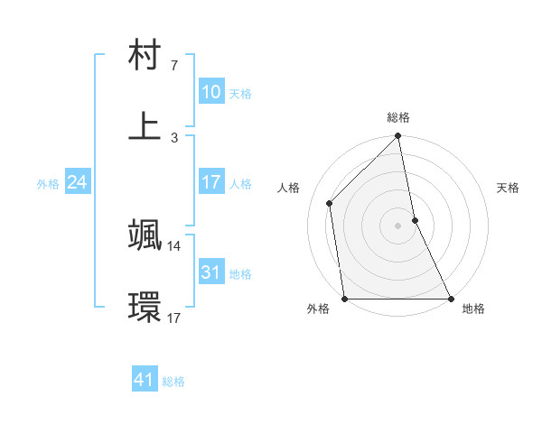 村上 颯環さんの総格は41画の5点!