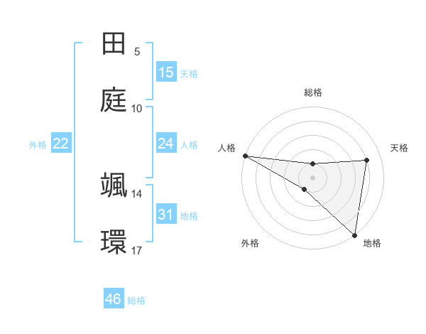 田庭 颯環さんの天格は15画の4点!