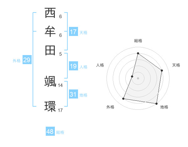 西牟田 颯環さんを姓名の画数から五運を鑑定