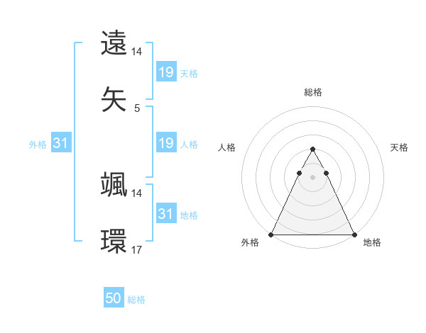 遠矢 颯環さんを姓名の画数から五運を鑑定