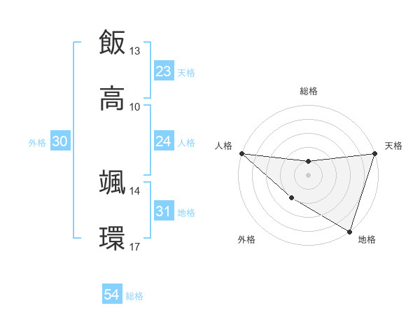 飯高 颯環さんの総格は54画の1点!