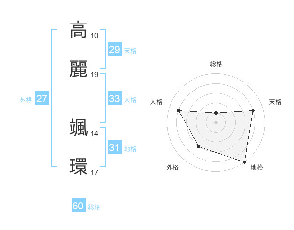 高麗 颯環さんの総格は60画の1点!