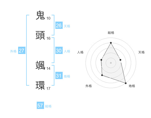 鬼頭 颯環さんの総格は57画の4点!