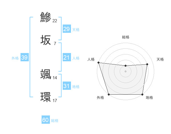 鰺坂 颯環さんの総格は60画の1点!