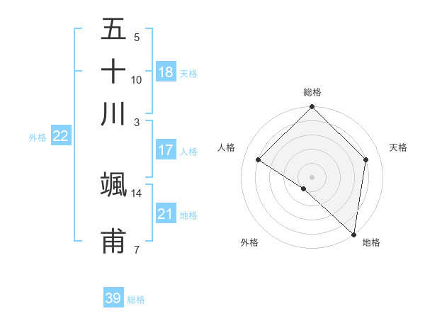 五十川 颯甫さんの総格は39画の5点