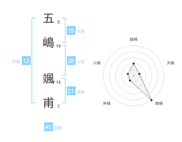 五嶋 颯甫さんの総格は40画の2点!