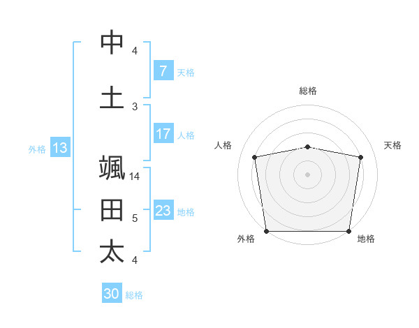 中土 颯田太さんを姓名の画数から五運を鑑定