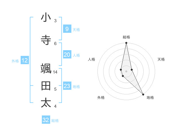 小寺 颯田太さんの総格は32画の5点!