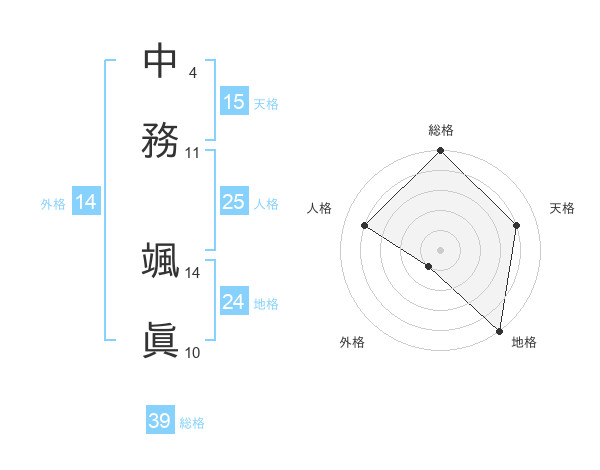中務 颯眞さんの外格は14画の1点!