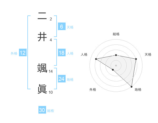 二井 颯眞さんの地格は24画の5点!