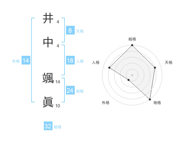 井中 颯眞さんの総格は32画の5点!