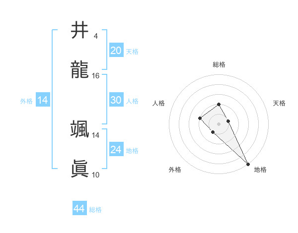 井龍 颯眞さんの総格は44画の2点!