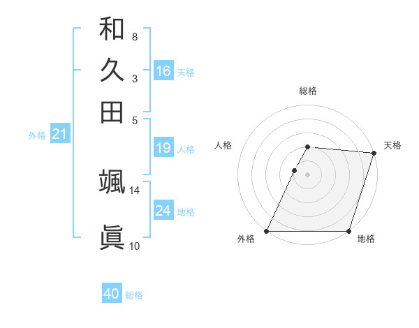 和久田 颯眞さんの地格は24画の5点!