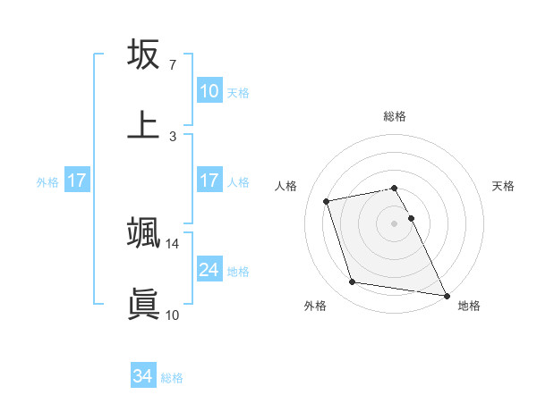 坂上 颯眞さんの総格は34画の2点!