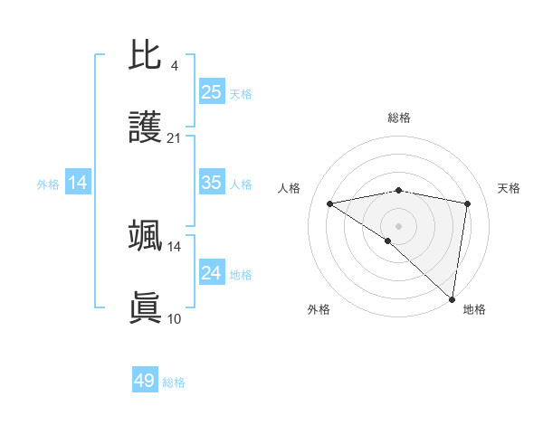 比護 颯眞さんの地格は24画の5点!