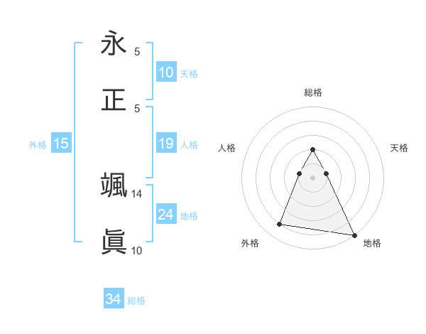永正 颯眞さんの地格は24画の5点!