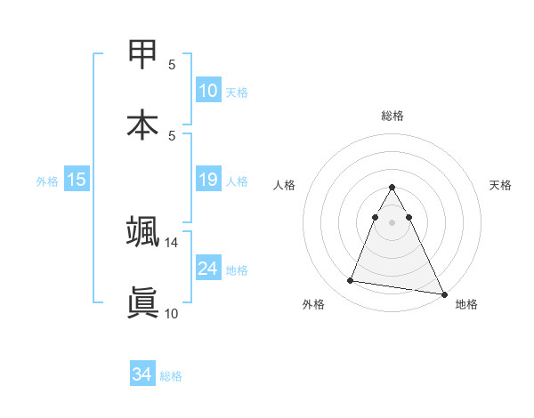 甲本 颯眞さんの総格は34画の2点!