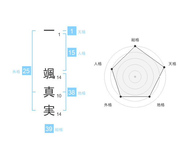 一 颯真実さんの総格は39画の5点!