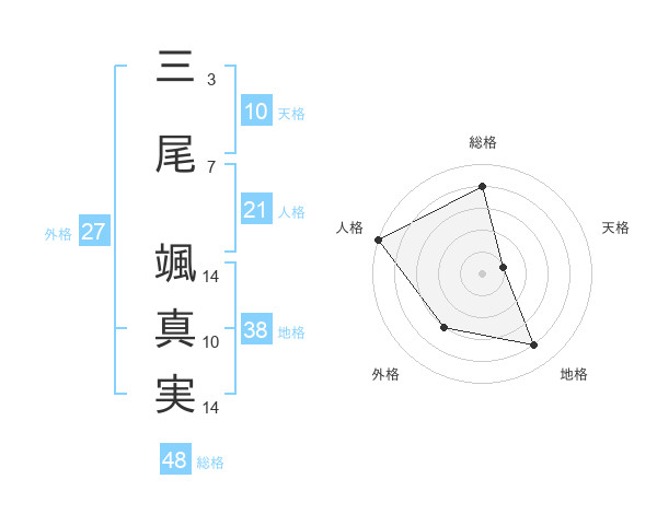 三尾 颯真実さんを姓名の画数から五運を鑑定