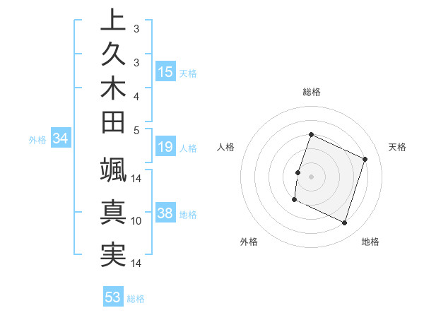 上久木田 颯真実さんを姓名の画数から五運を鑑定