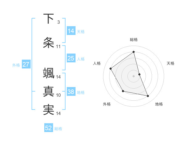 下条 颯真実さんの総格は52画の4点!