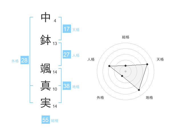 中鉢 颯真実さんの天格は17画の4点!