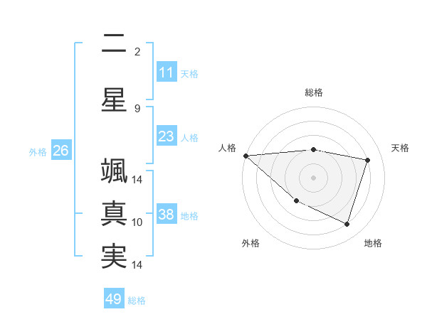 二星 颯真実さんの総格は49画の2点!