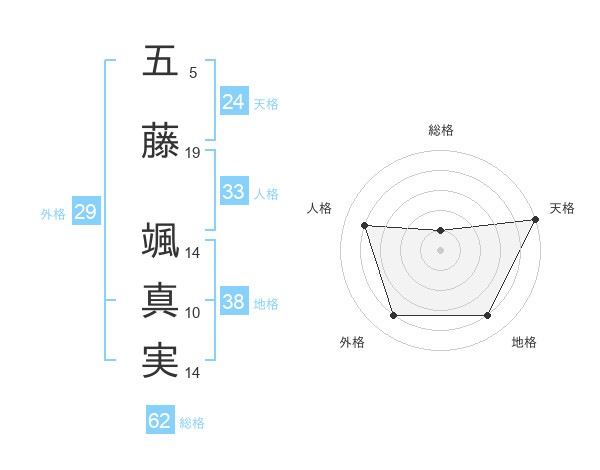 五藤 颯真実さんの天格は24画の5点!