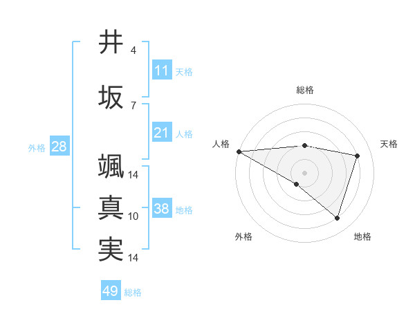 井坂 颯真実さんを姓名の画数から五運を鑑定