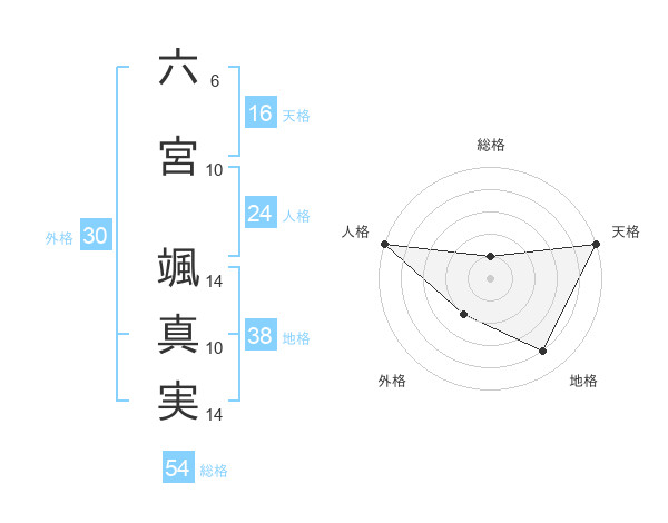六宮 颯真実さんを姓名の画数から五運を鑑定