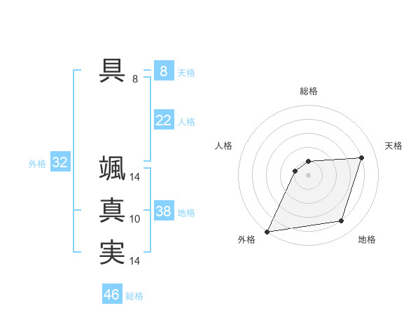 具 颯真実さんの外格は32画の5点!