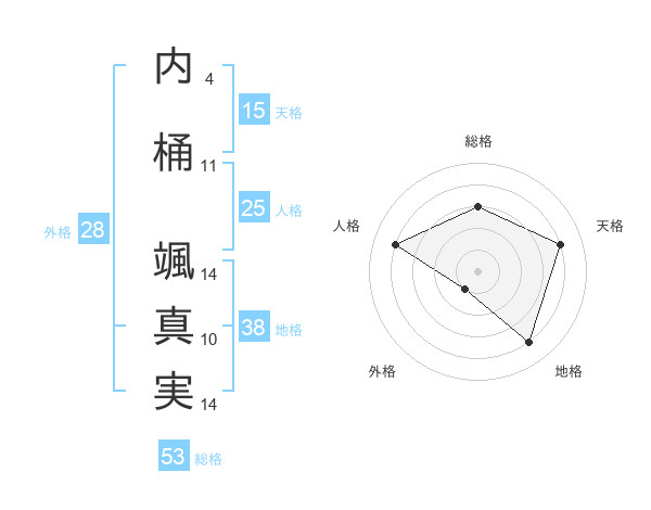 内桶 颯真実さんを姓名の画数から五運を鑑定