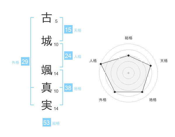 古城 颯真実さんを姓名の画数から五運を鑑定
