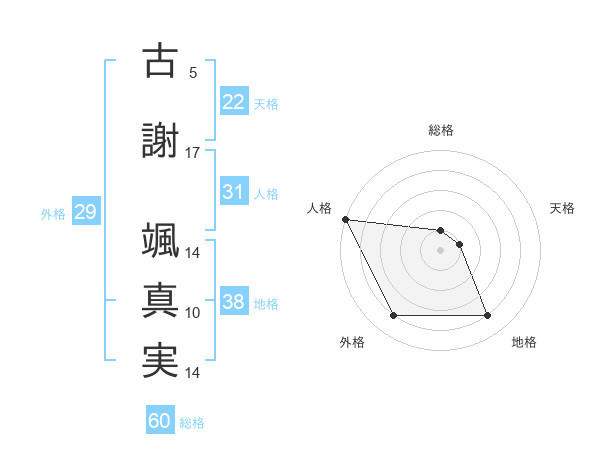 古謝 颯真実さんの総格は60画の1点!