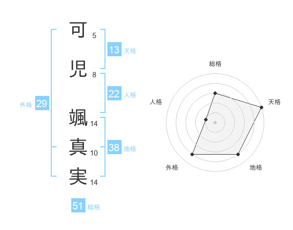 可児 颯真実さんを姓名の画数から五運を鑑定