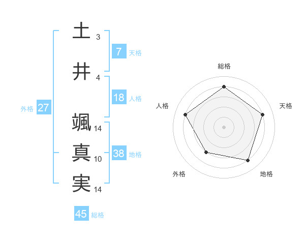 土井 颯真実さんの総格は45画の4点!