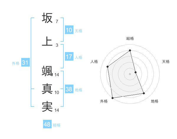 坂上 颯真実さんの地格は38画の4点!